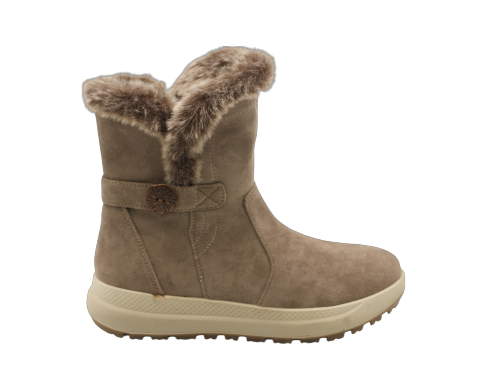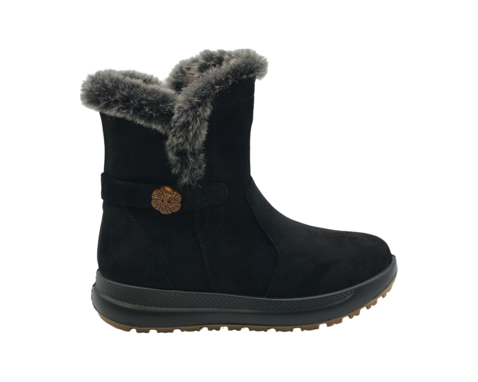 Com fecho lateral para facilitar o calçar e sola que melhora a tração, com altura de 4cm.