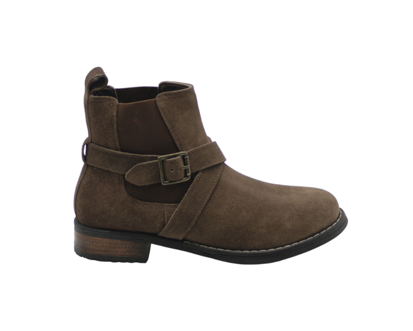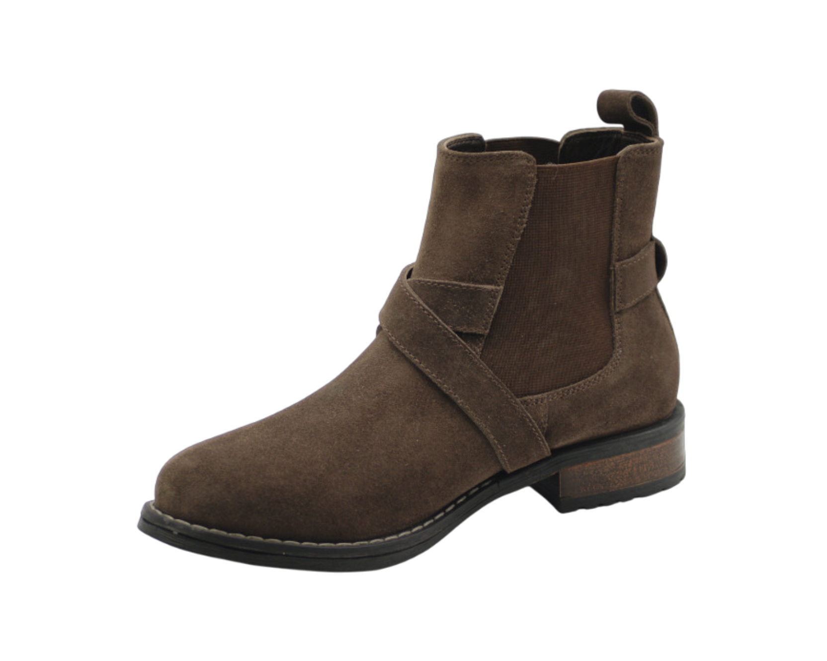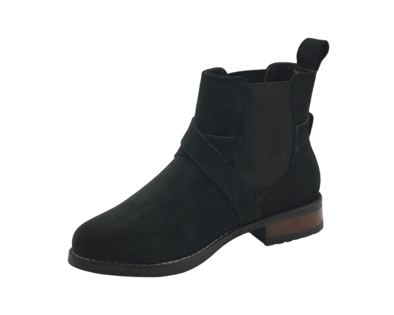 Botim de design clássico em camurça, com elásticos laterais e puxador traseiro para facilitar o calçar.