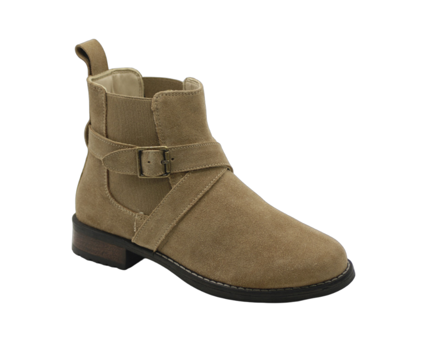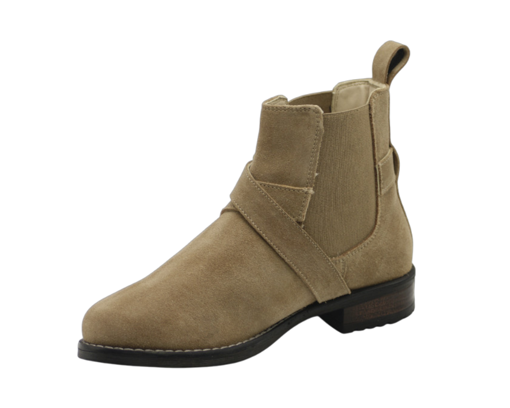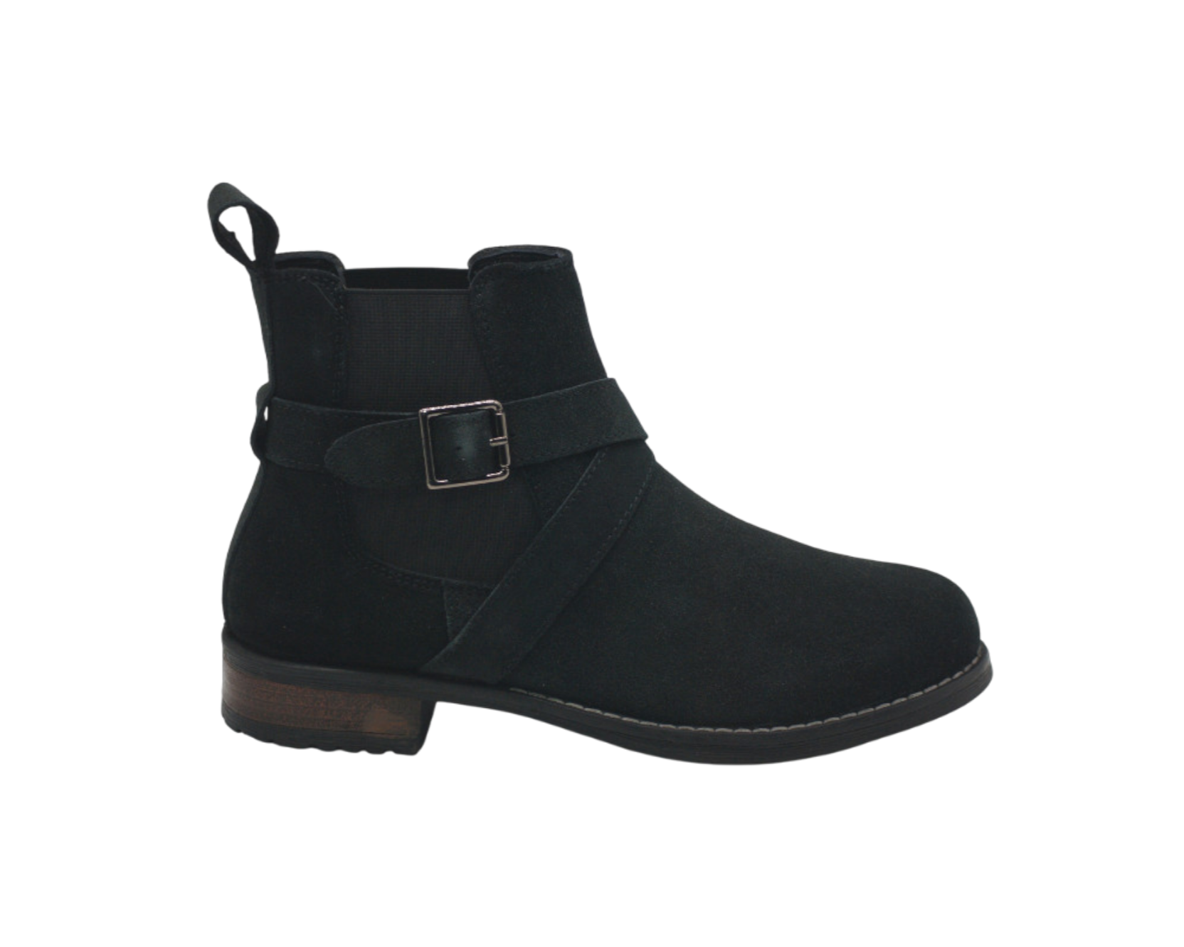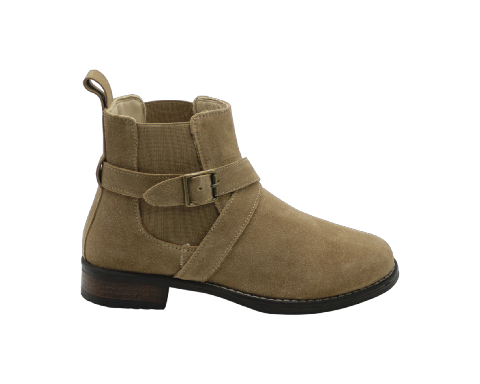 Botim de design clássico em camurça, com elásticos laterais e puxador traseiro para facilitar o calçar.